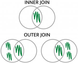 Złączenie tego typu wyświetla dany wiersz nawet, jeżeli nie ma dla niego dopasowania po drugiej stronie złączenia. Baza danych Oracle jako operator tego typu złączeń wykorzystuje znak plus w nawiasach (+).